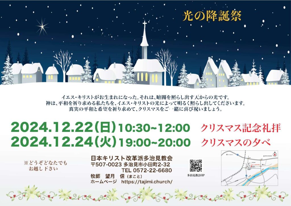 多治見教会では、次のとおり、クリスマスの集会を開催いたします。