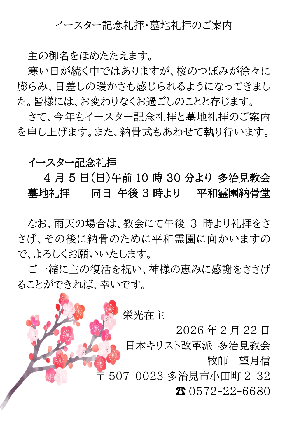 復活の主を仰ぎ、召天された信仰の先輩方を偲ぶ時を共にいたしましょう。